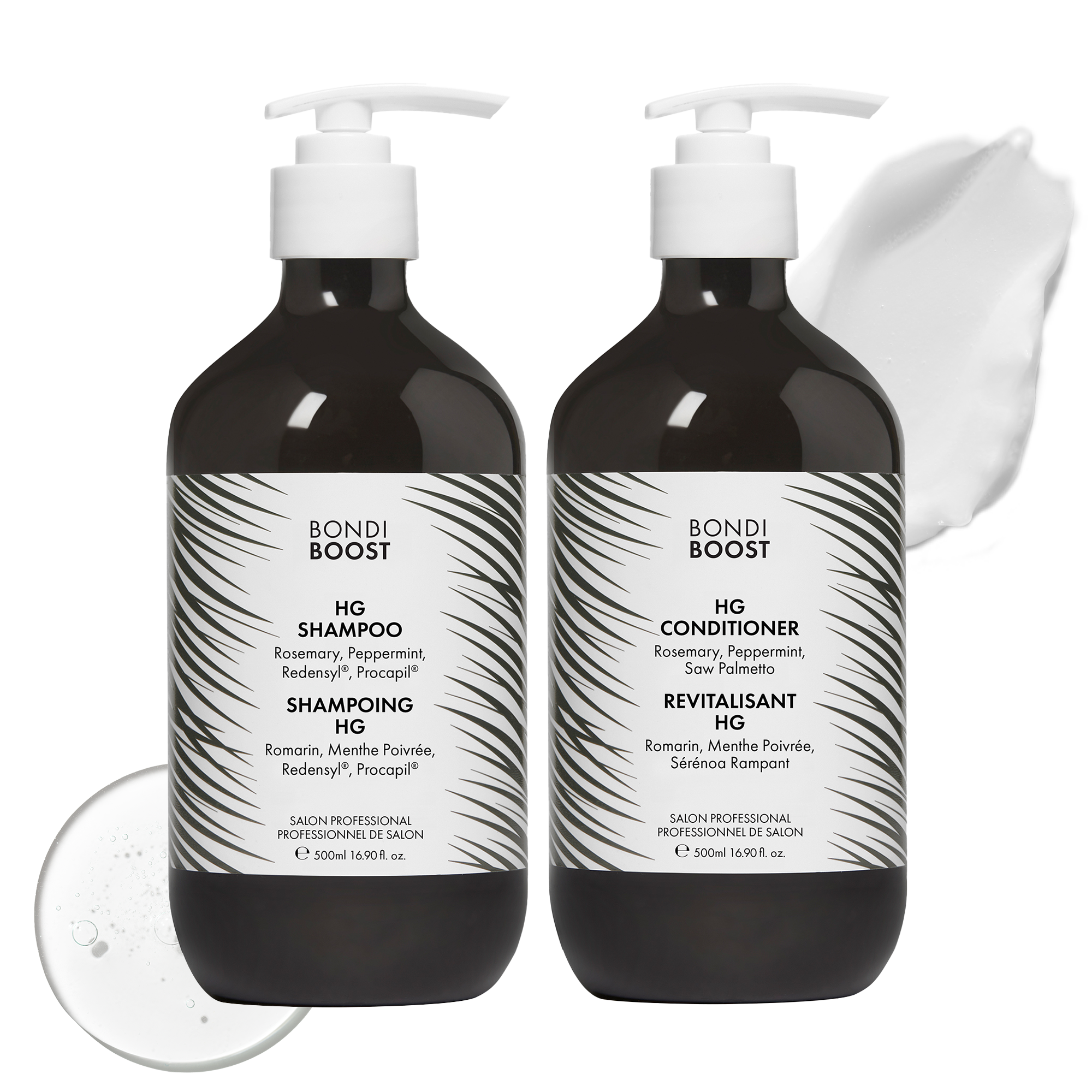 Go to great lengths with HG. This clean. sulphate-and silicone-free wash day duo starts at the scalp. creating the foundation for fuller. healthier-looking hair. Infused with Rosemary to stimulate. Saw Palmetto to help reduce hair fall. and plant-based Redensyl and Procapilaka nature’s minoxidil. Bonus: Peppermint cools and soothes. leaving your scalp feeling fresh. The result? Hydrated. resilient hair that’s ready to go the distance.